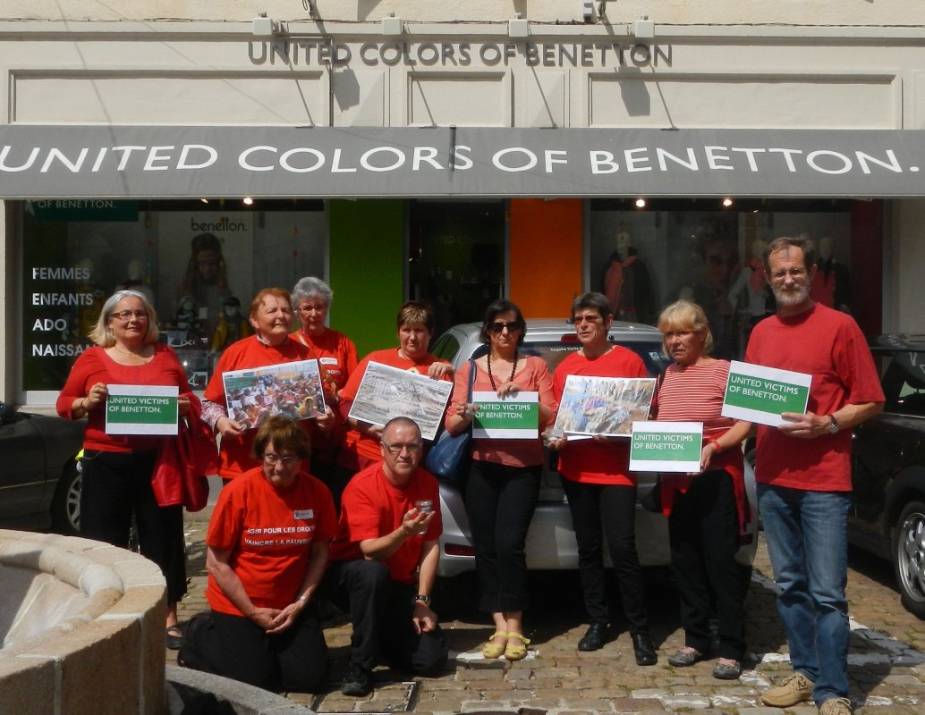 En 2014, Actionaid pour des peuples Solidaires avec Artisans du Monde avons réalisé la première action devant Benetton pour exiger de la marque qu’elle indemnise les victimes du drame du Rana Plaza.